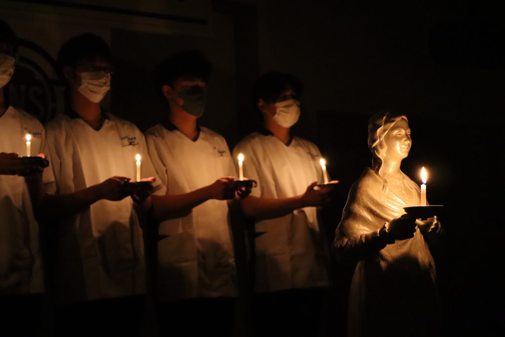 宣誓式では厳かに、力強く看護の誓いを立てた第13期生ですが、午前中に細かな調整を行うために最終リハーサルを行いました。